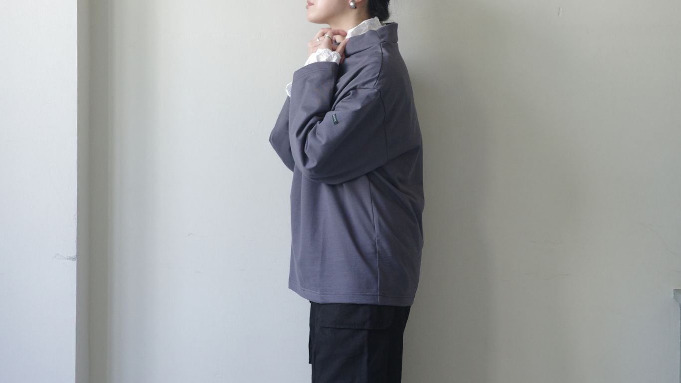 OUTIL(ウティ)のバスクシャツをご紹介。モックネックタイプで、インナーを気にすることなく、ユルっとラフに取り入れていただけます。