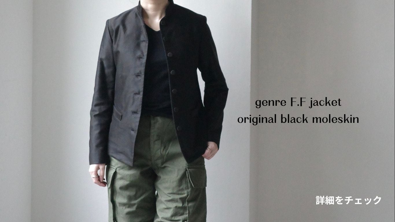 ヴィンテージウエアにひと手間を加え、genreのフィルターを通して再構築するレーベル “genre vintage”。ベースは、1930年代頃フランス軍に支給されていたDead Stockのオーバーコート。元はやわらかな生成り色だった一着に、職人による特殊な染色と加工を施しました。