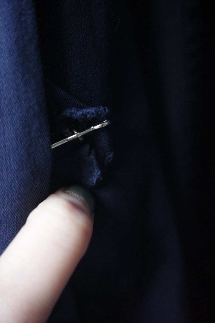 1番下のボタンホールほつれてます。