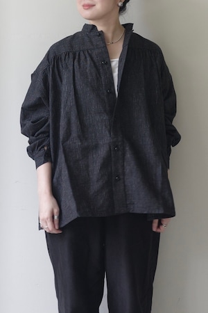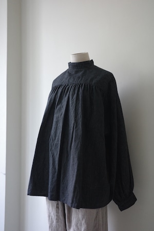 1930年頃、フランス郵便局(PTT)のワークスモックをベースにアレンジしたデザイン。小ぶりなスタンドカラーにたっぷりのギャザー、ふんわりとした袖がポイントです。共布のベルトをウエストマークしてクラシックに、前開きにして羽織ったり、更には前後どちらでも着用可能なので全く違った印象で幾通りもの着こなしをお楽しみいただけます。