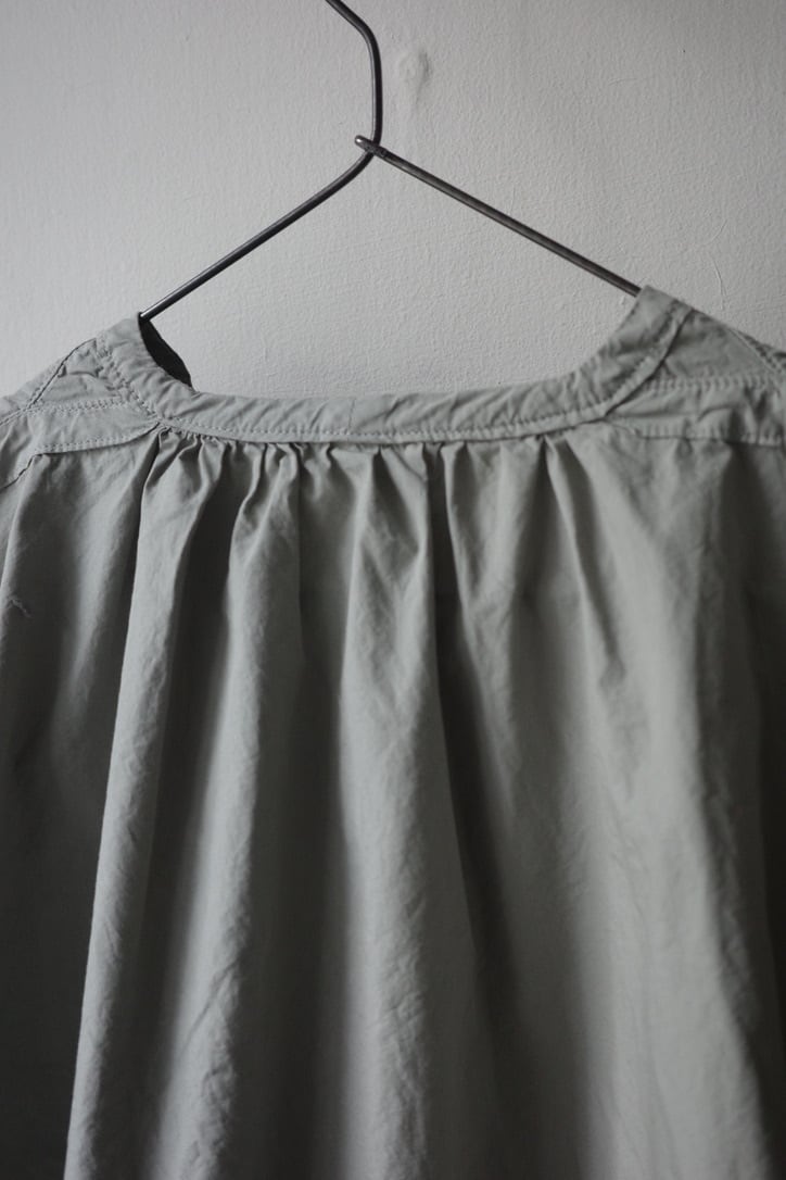 1900'sフランスの短いスモッグのようなブラウスをベースにしたデザイン。肩のヨークや、脇下からのマチの切り替えなど細部の丁寧な仕様により立体的なフォルムが形成されています。ボリュームが出過ぎずスッキリとした印象です。