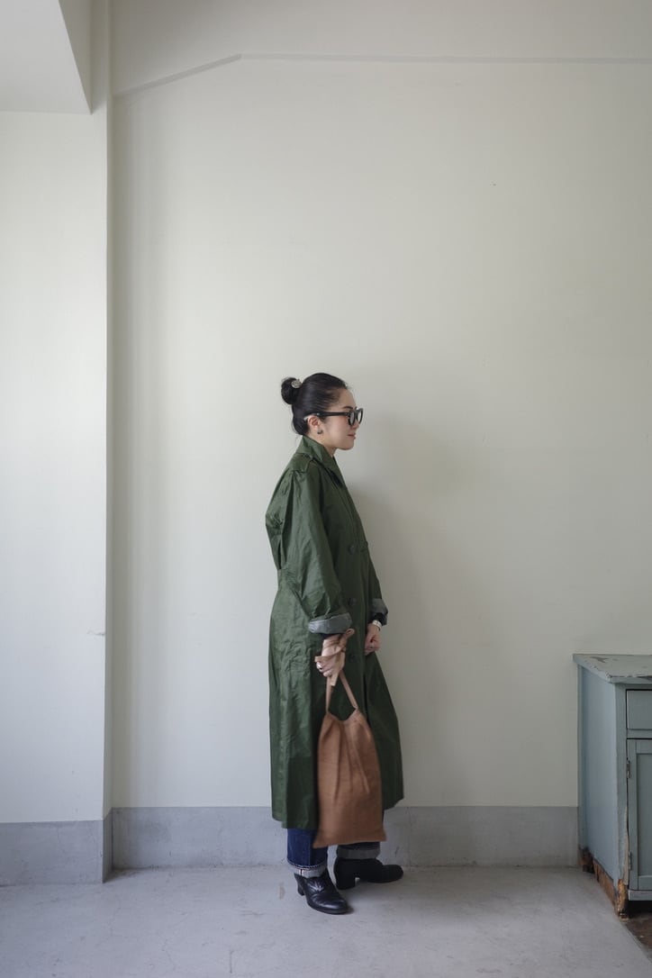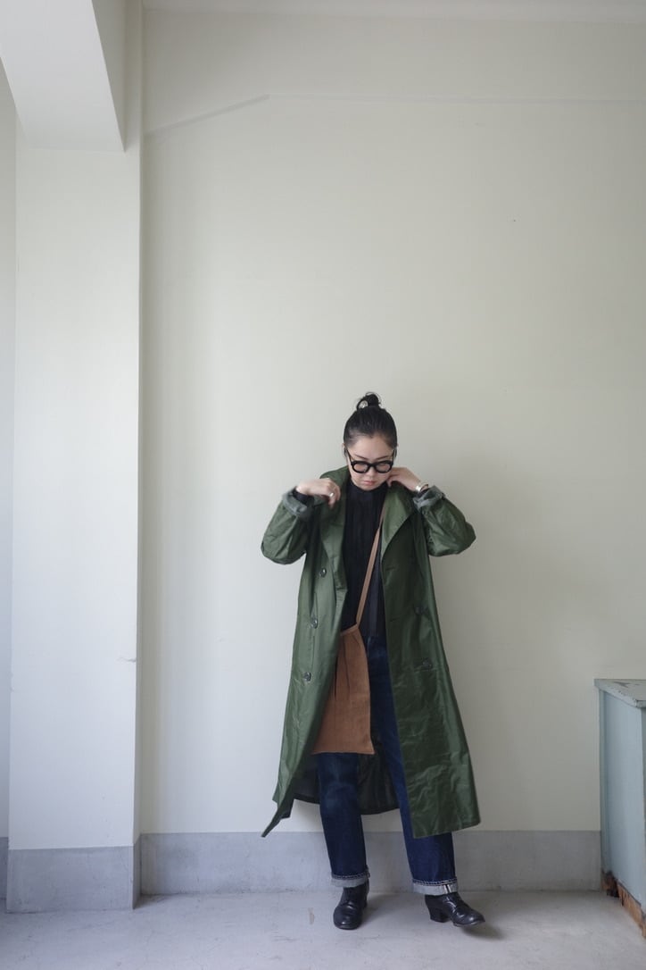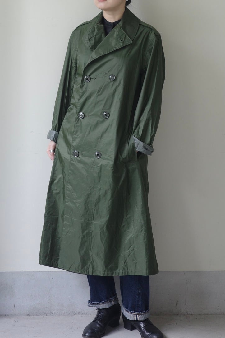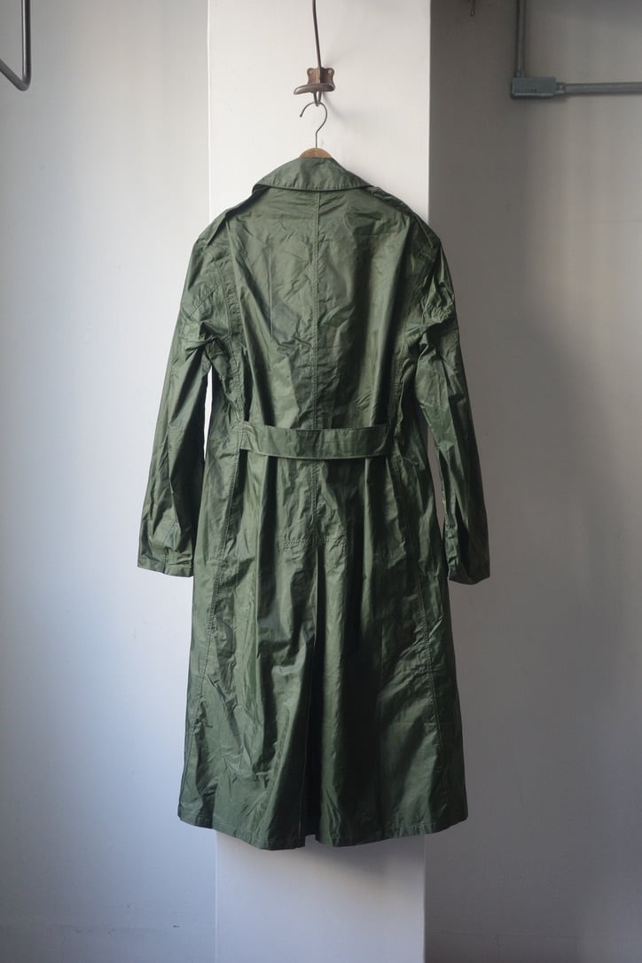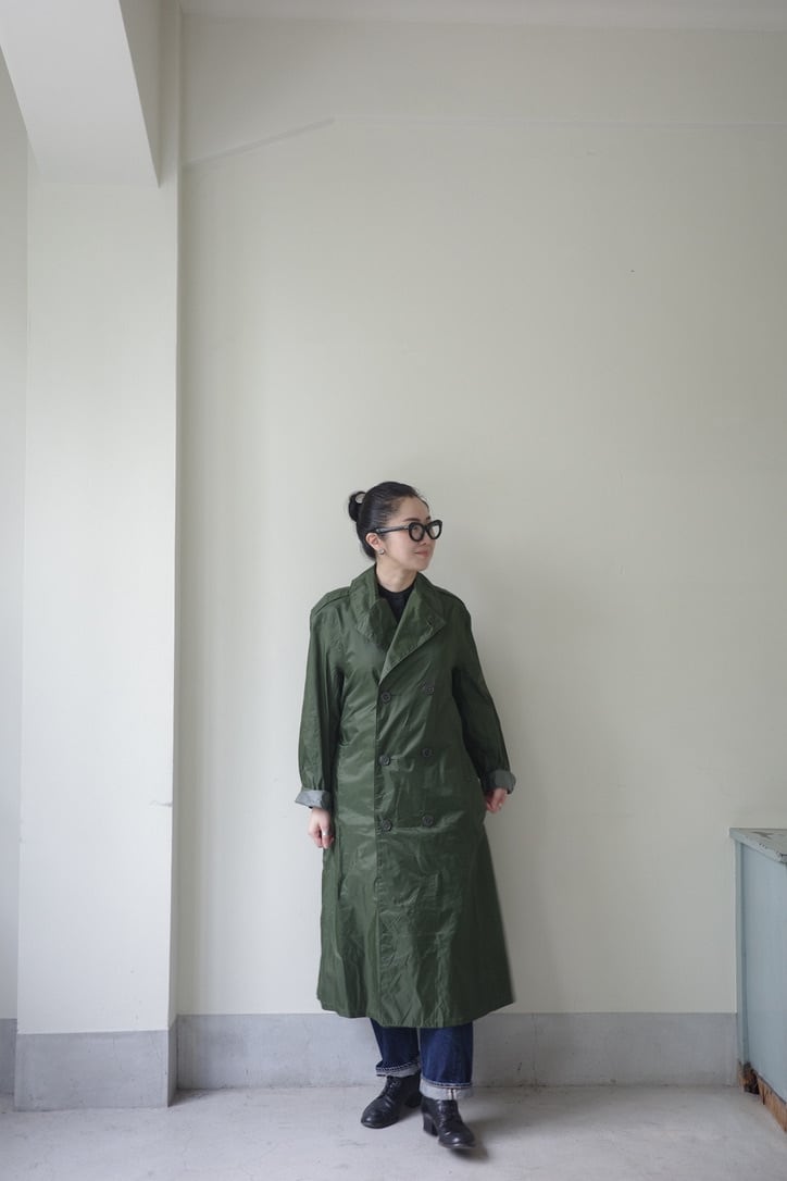 70年代頃に米軍で支給されていたナイロン製のレインコート。女性にぴったりな32という小さなサイズが入荷しました。バサッと羽織った姿は格好良く、とても男前な1着です。