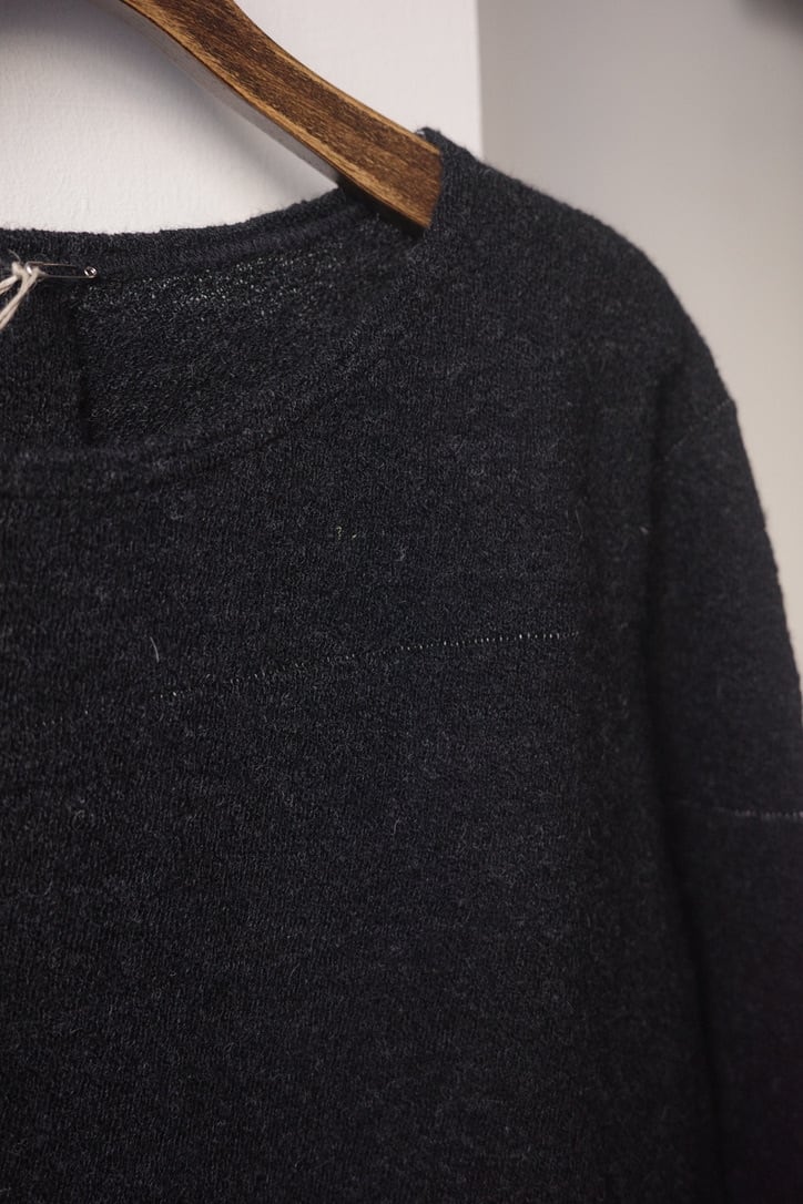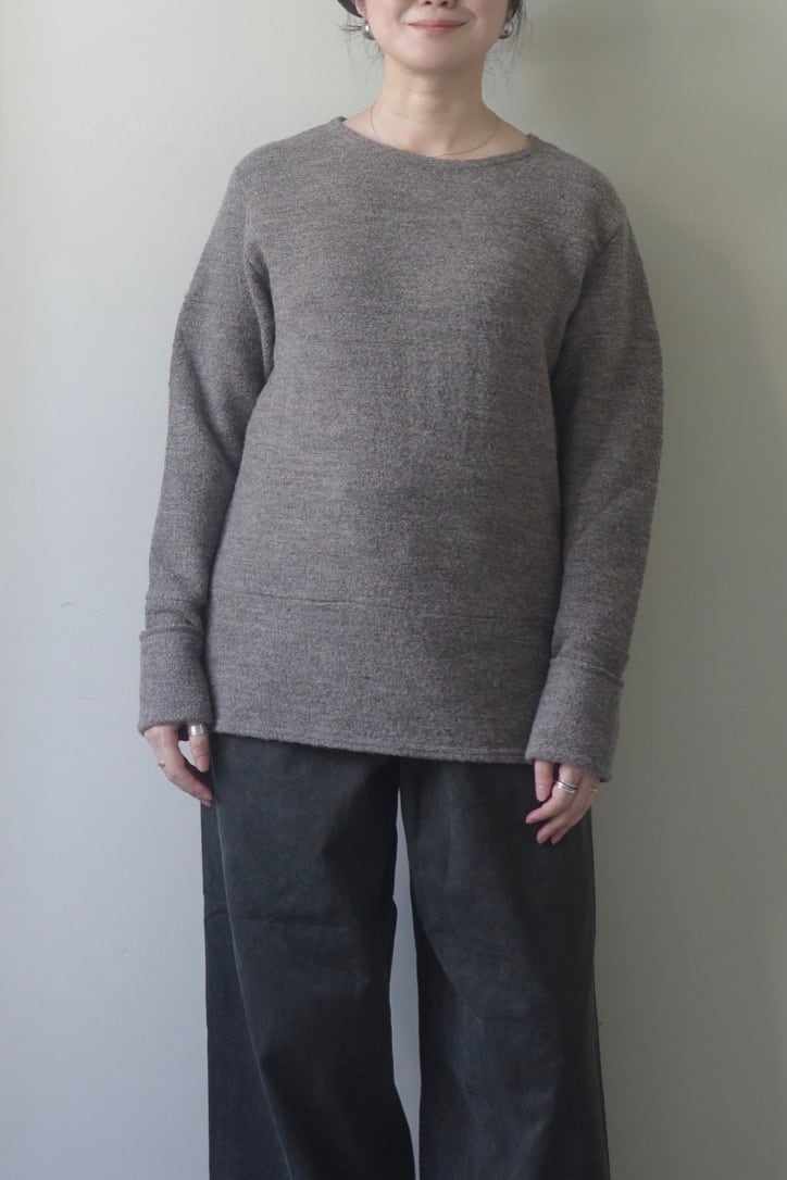 フランス軍のボーダーバスクシャツがデザインのベースとなったセーター。スッキリとしたボートネック、切り替えし部分の仕様やサイドのスリット...定番と呼ばれるバスクシャツのシルエットです。ややゆとりあるボディーに対して、袖は細くすっきりとした作り。このバランスがまた良いのです。長い袖はクシュっとそのままでも、折り返しても素敵ですよ。