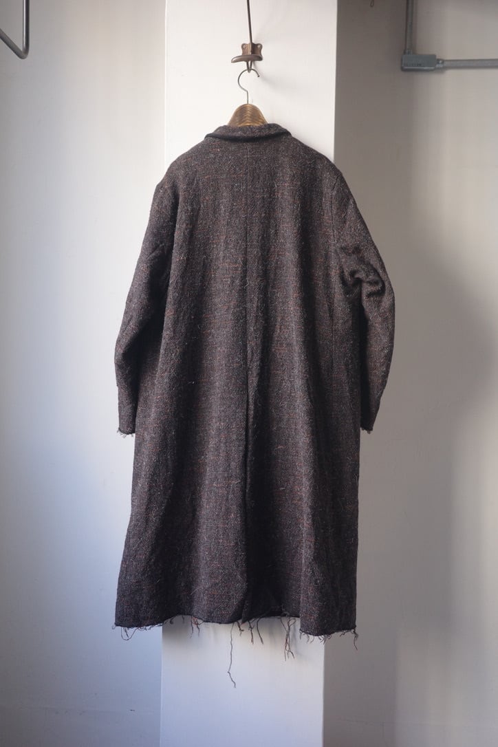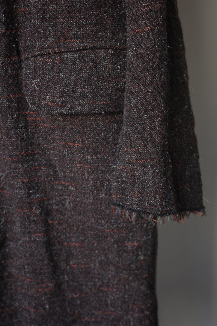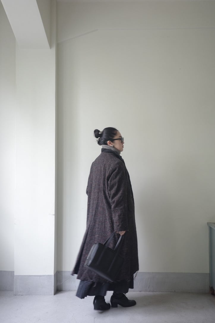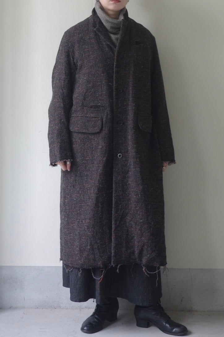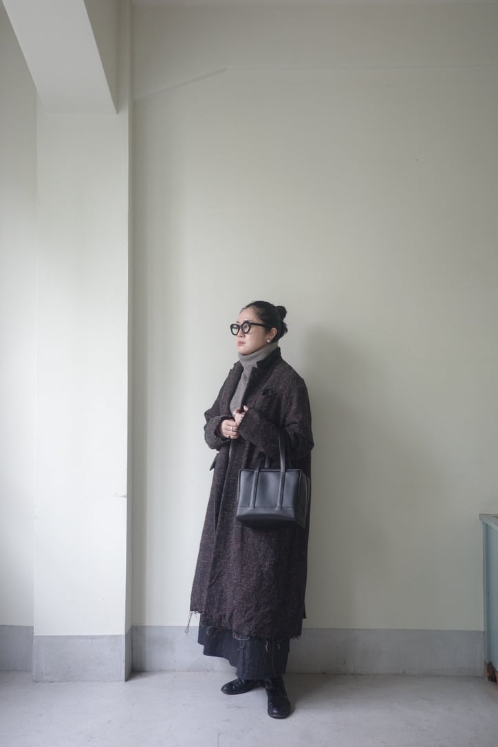 ほどよくゆとりのあるシルエットに、まっすぐ落ちる美しいラインが洗練された印象を与えています。裾や縫い代に施したカットオフ仕上げが、クラシックなデザインにラフで現代的なニュアンスを添えていてKLASICAらしい1着。襟元は2WAY、ボタンを閉じても素敵です。