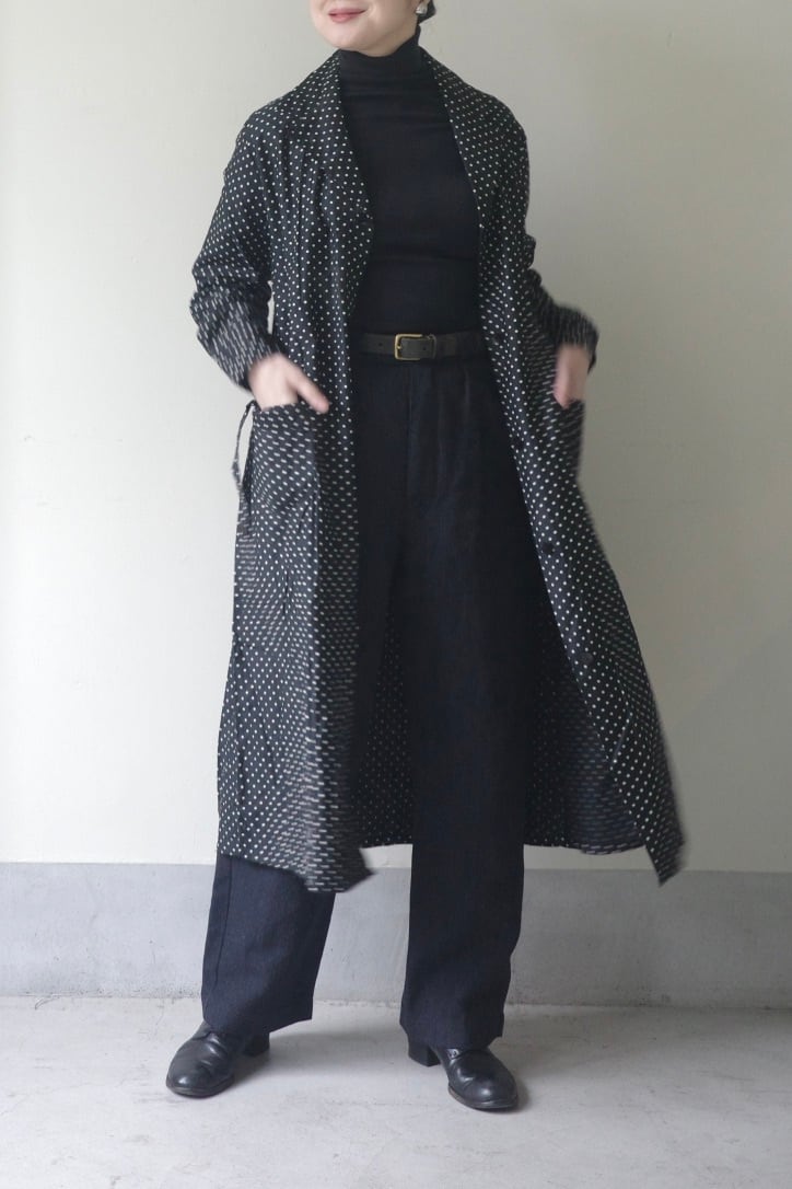 オリジナルで製作したウールリネンのシャドーストライプ生地で作りました。
