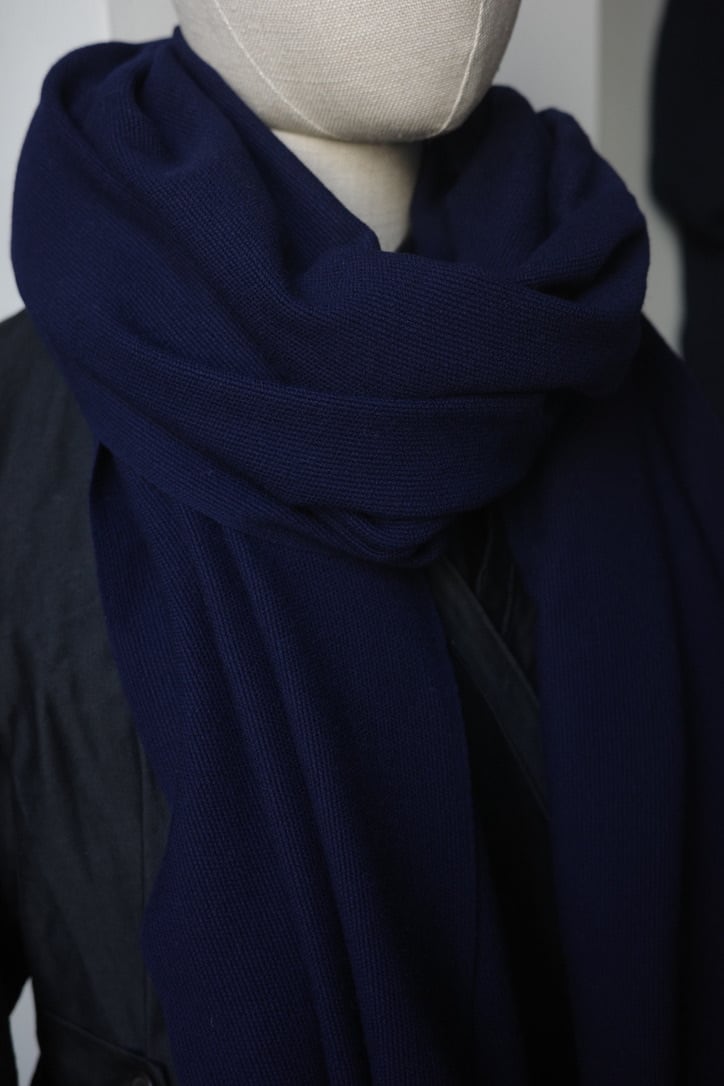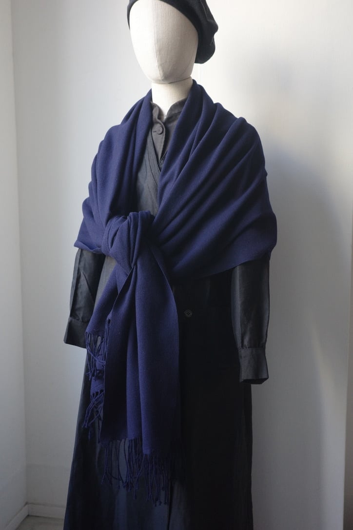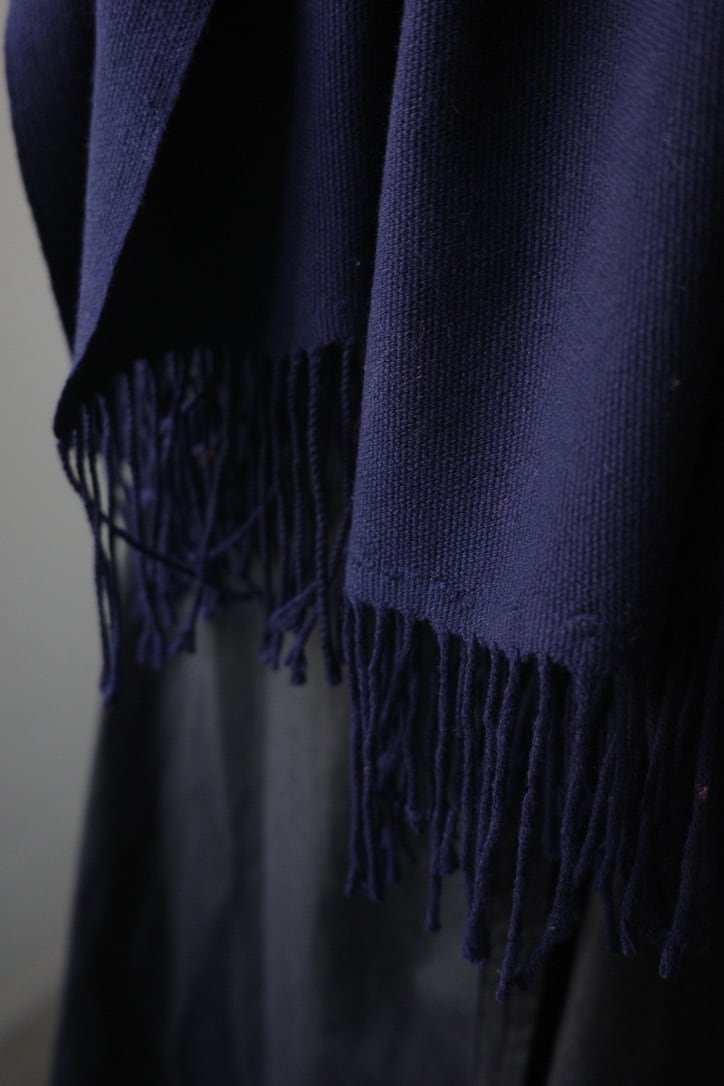 こちらのストールは、カシミアに迫る極細のウール糸を用いて織り上げた一枚です。しっとりと柔らかな質感が特徴で、肌に沿うような心地よい素材感を味わっていただけます。