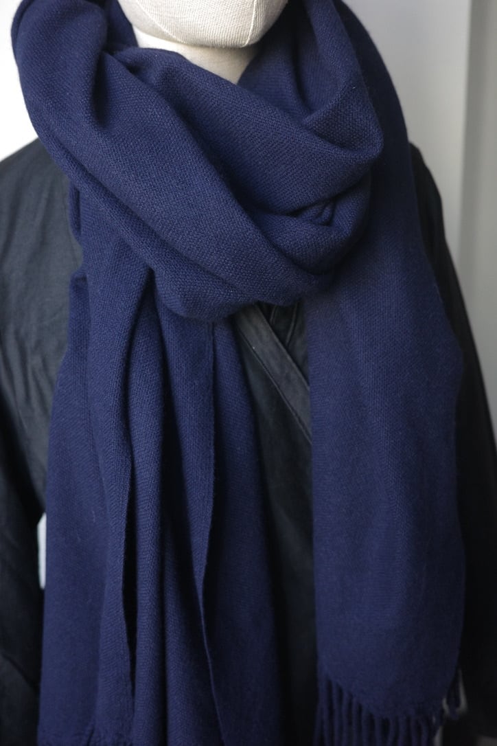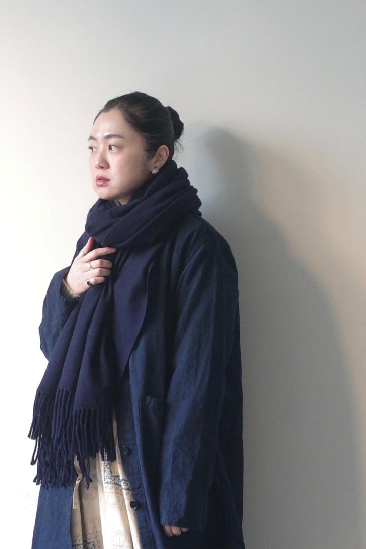 こちらのストールは、カシミアをブレンドした上質な一本です。もっちりと滑らかな質感は、まさに極上の肌触り。ひと巻きするだけで、素材の上質さが際立ちます。
