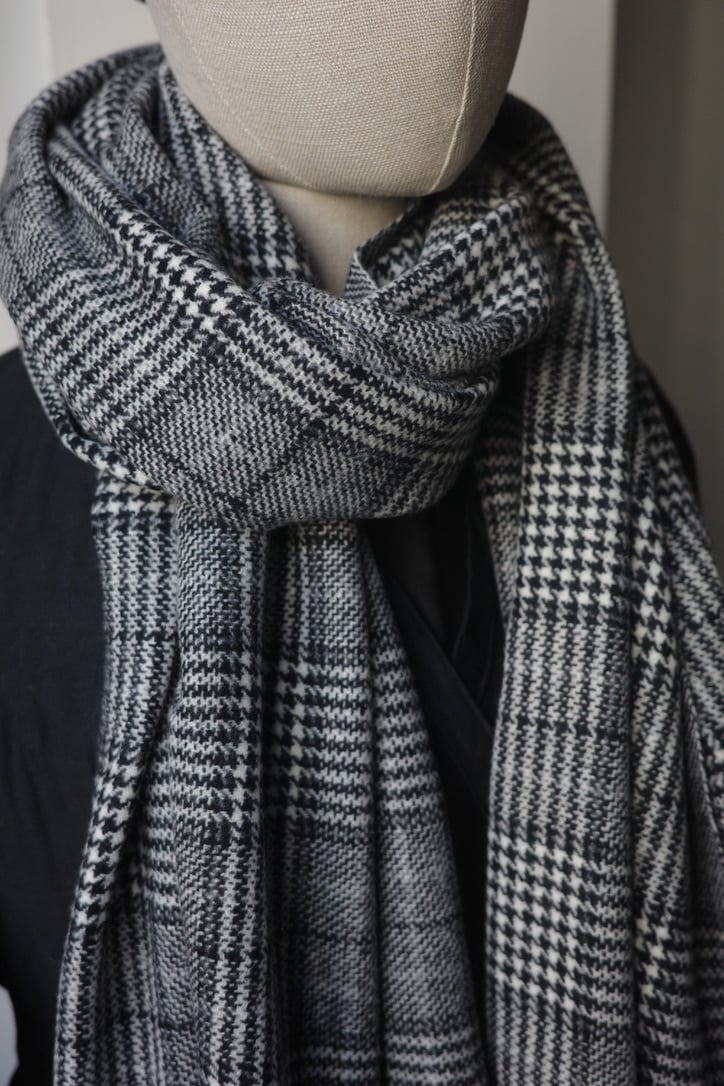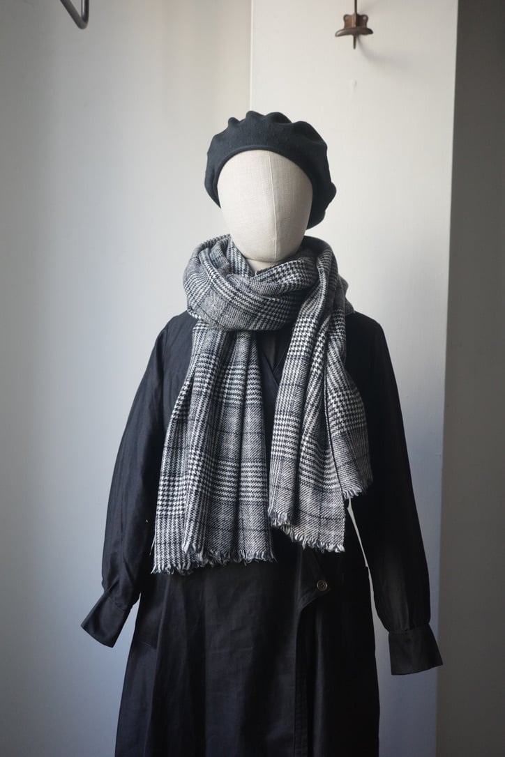 こちらのストールは、カシミアをブレンドした上質な一本です。もっちりと滑らかな質感は、まさに極上の肌触り。ひと巻きするだけで、素材の上質さが際立ちます。