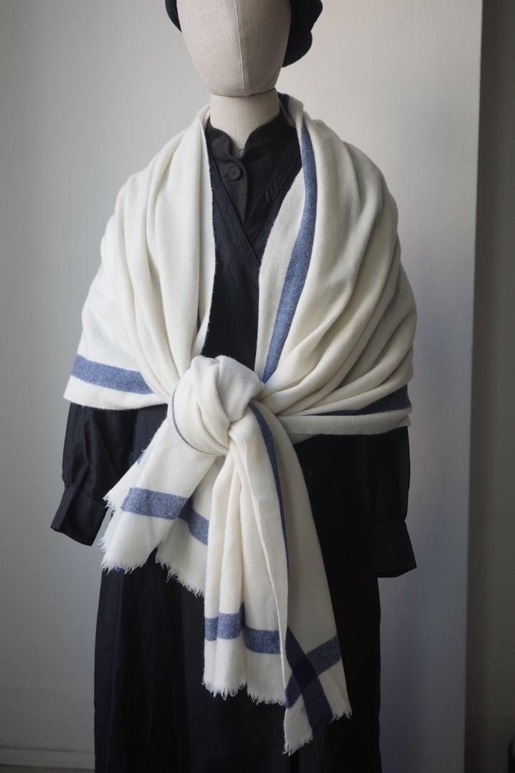 こちらのストールは、カシミアをブレンドした上質な一本です。もっちりと滑らかな質感は、まさに極上の肌触り。ひと巻きするだけで、素材の上質さが際立ちます。