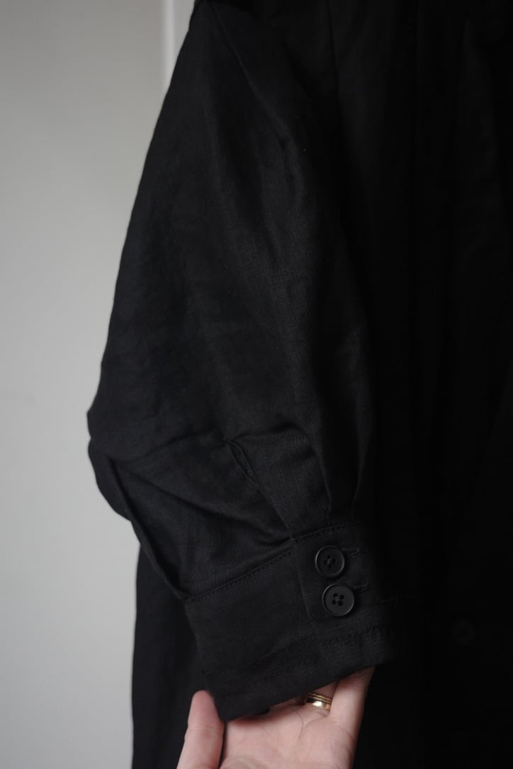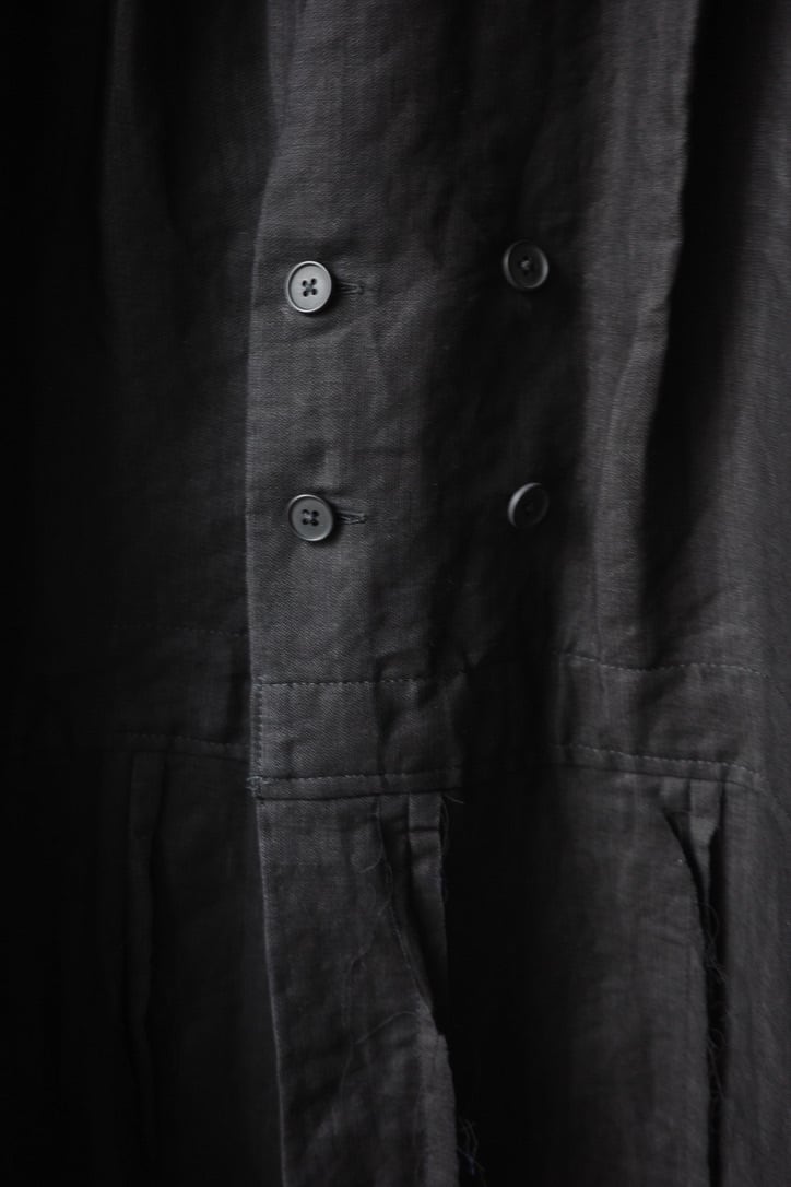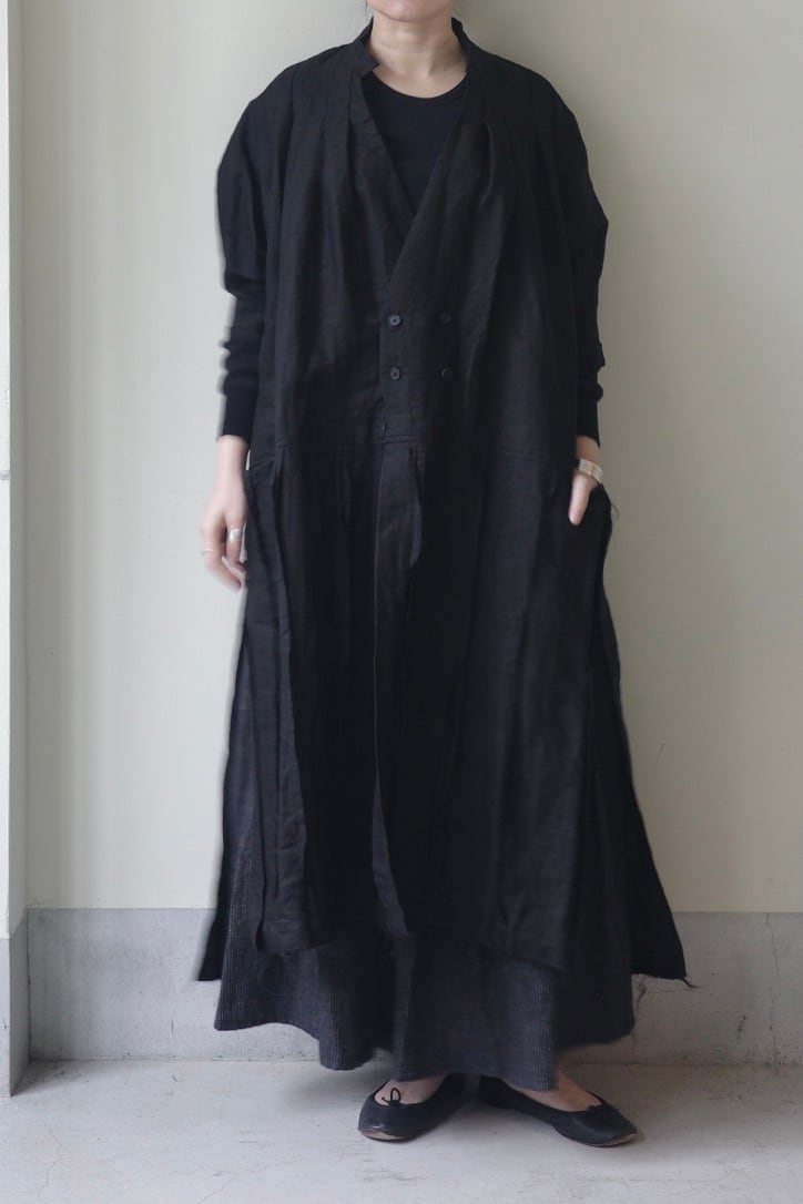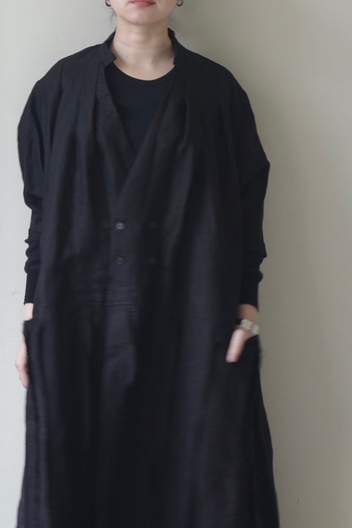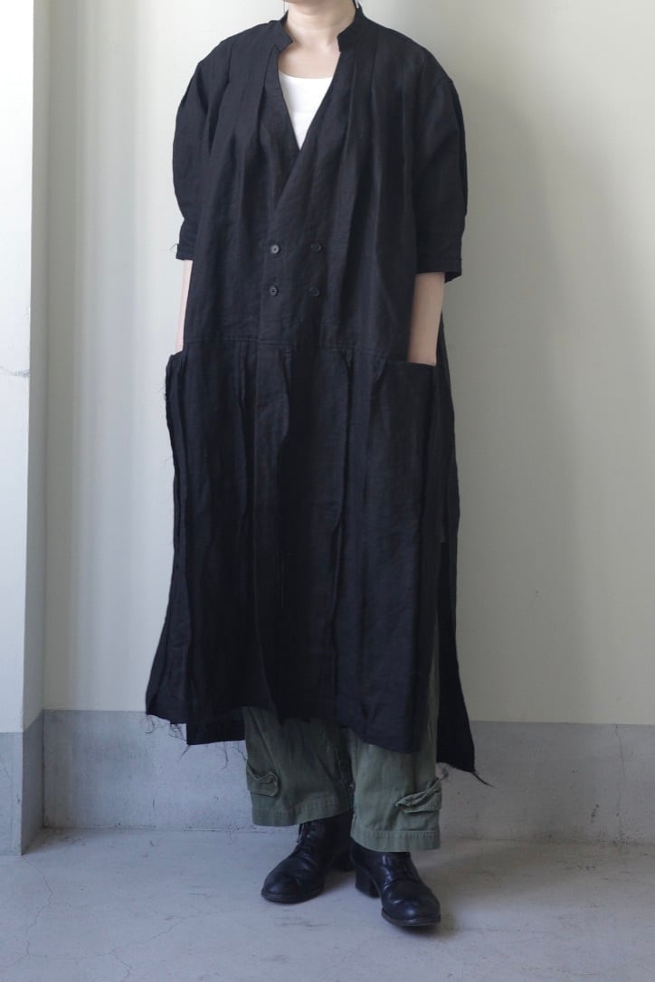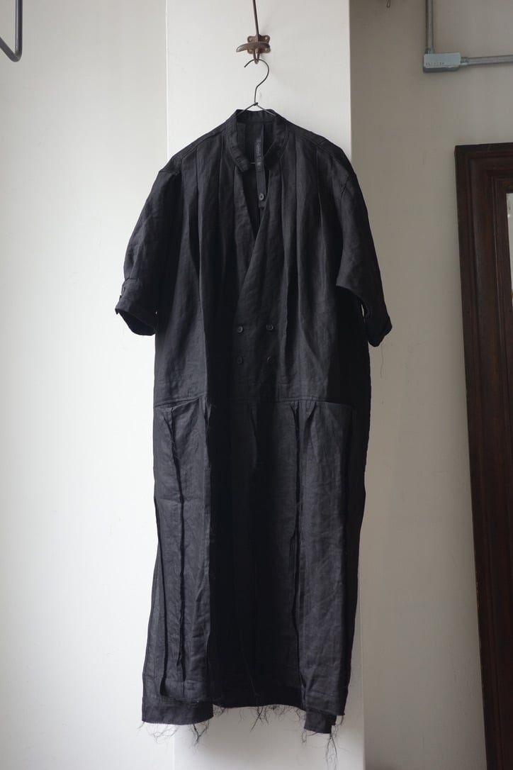着丈とボリュームがありながら、深めのサイドスリットですっきりとした印象に。切りっぱなしの裾や袖口が、独特の空気感を引き立てます。季節を問わず、インナー次第で通年楽しめる一着です。