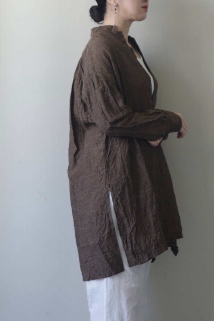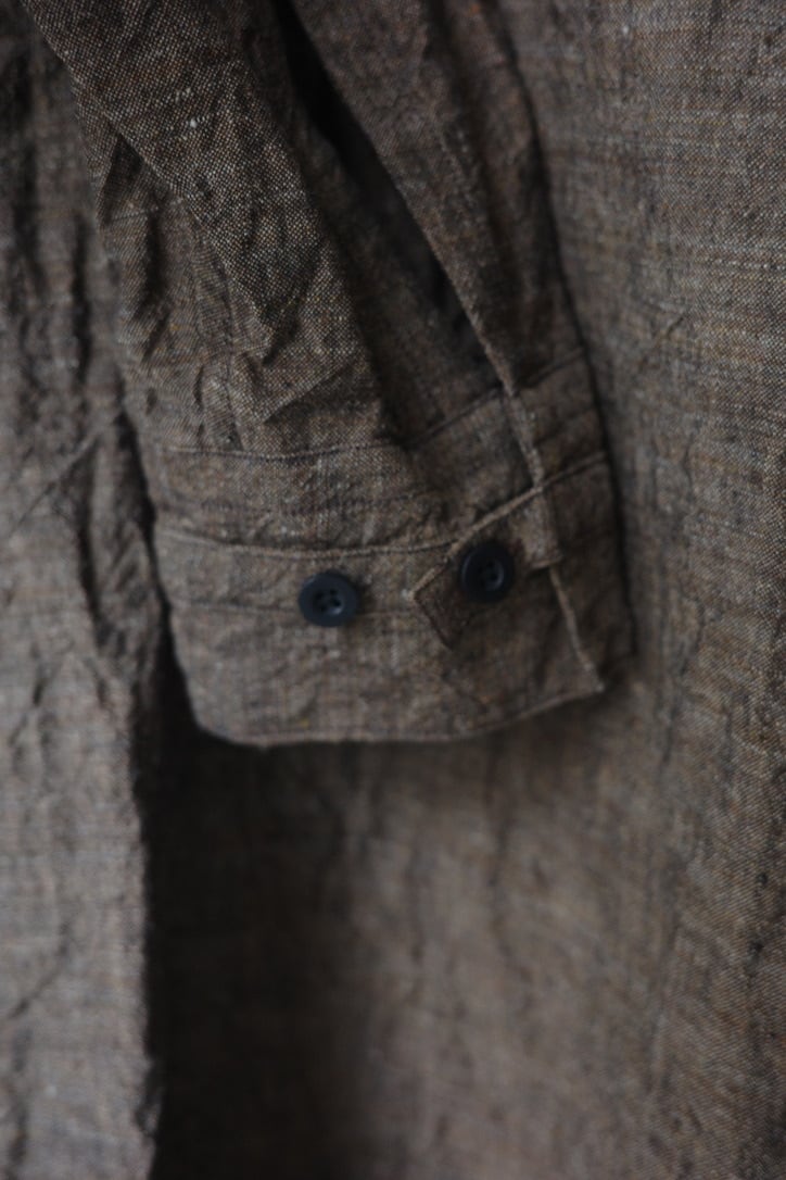 素材にはフランス・ノルマンディー地方のリネンを使用。太めの糸をゆったりと織り上げることで、空気を含んだような軽やかなシャンブレー生地に仕上げられています。