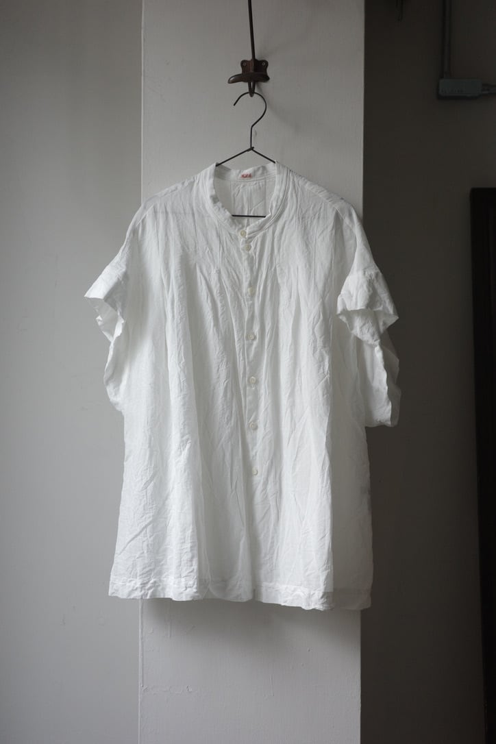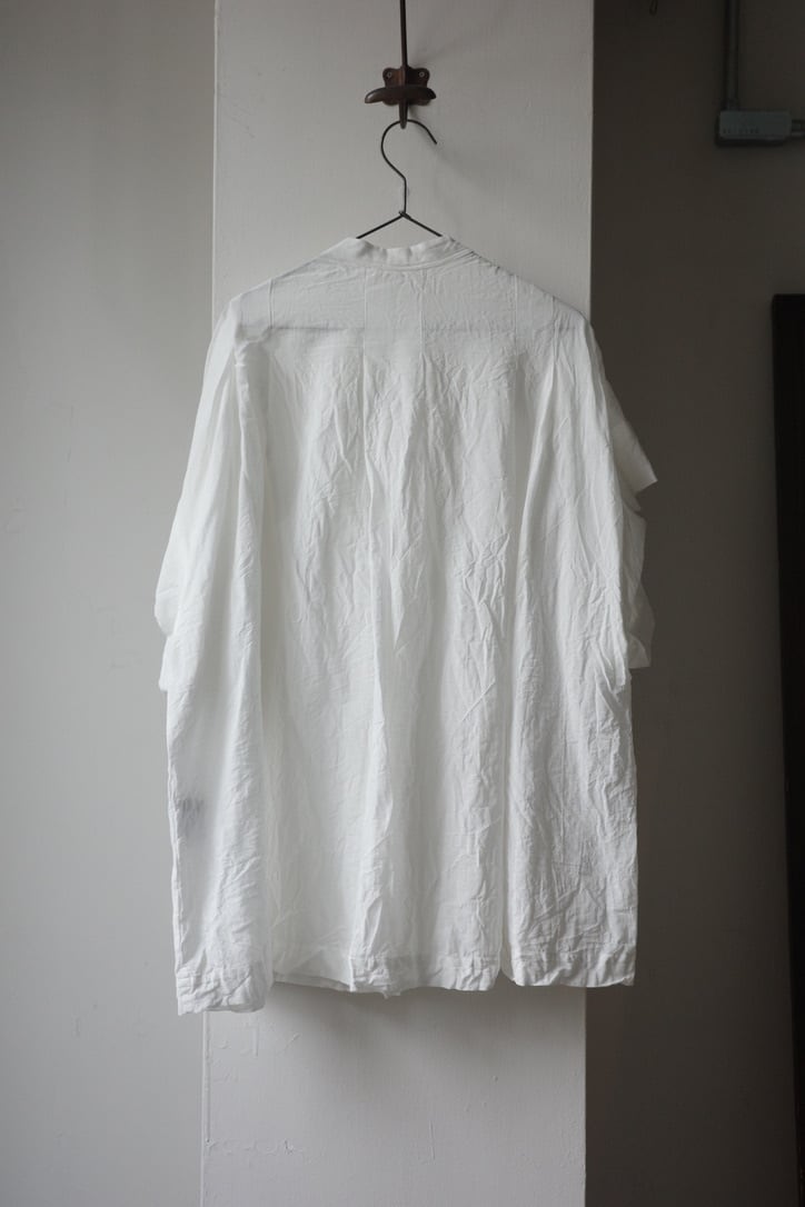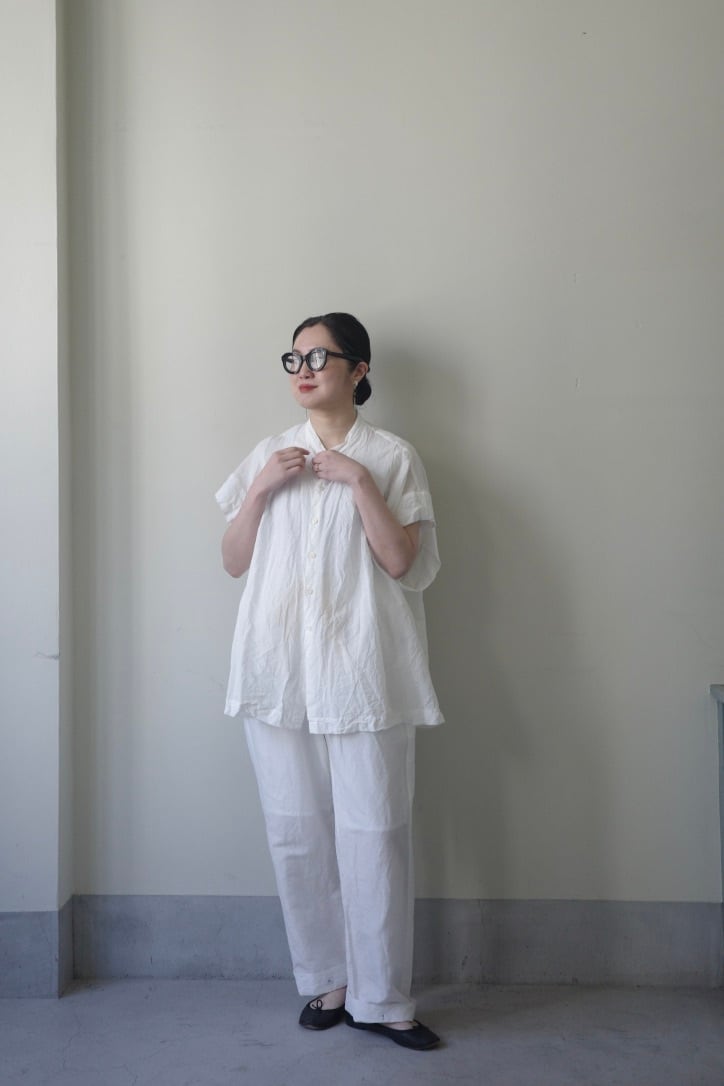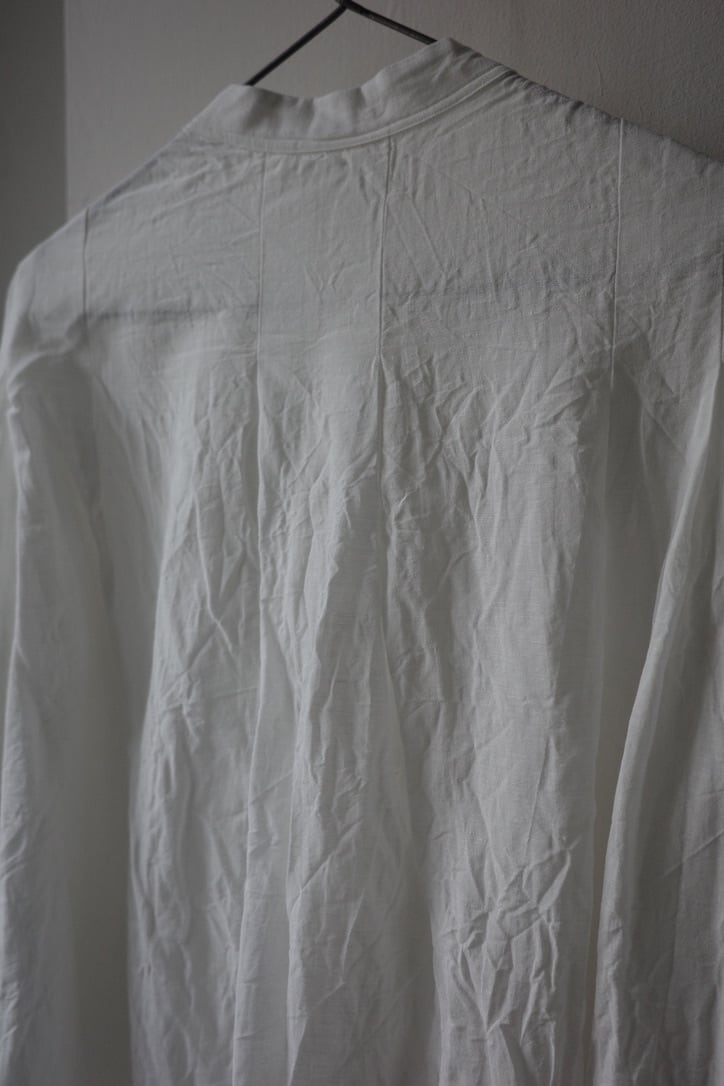 東洋の衣服に見られるゆったりとした直線的な作りと、18世紀ヨーロッパのブラウスの要素を掛け合わせたデザイン。ほとんど袖を感じさせない、ワイドでスクエアなシルエットが特徴。身体を包み込むような、ゆったりとしたバランスに仕上げられています。