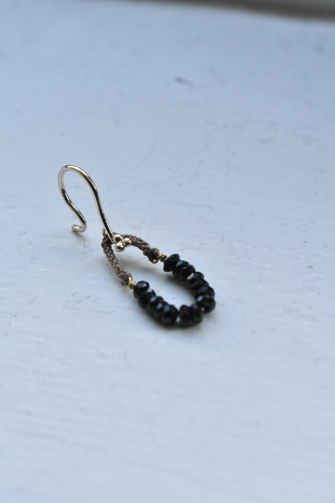 “シンプルで毎日身に纏うお守りのような存在のジュエリー”をコンセプトにした「スキン ジュエリー」シリーズのピアス。雫型の華奢で繊細な作りは手仕事によるもの。飾り立てるジュエリーというよりその人の魅力を引き立たせてくれるような、静かな美しさです。天然石はspinel(スピネル)。細やかなカットが施されておりとても繊細で上品さが際立ち、目を凝らして見たくなる佇まい。漆黒の麗しい輝きは女性らしく力強さも感じさせます。
