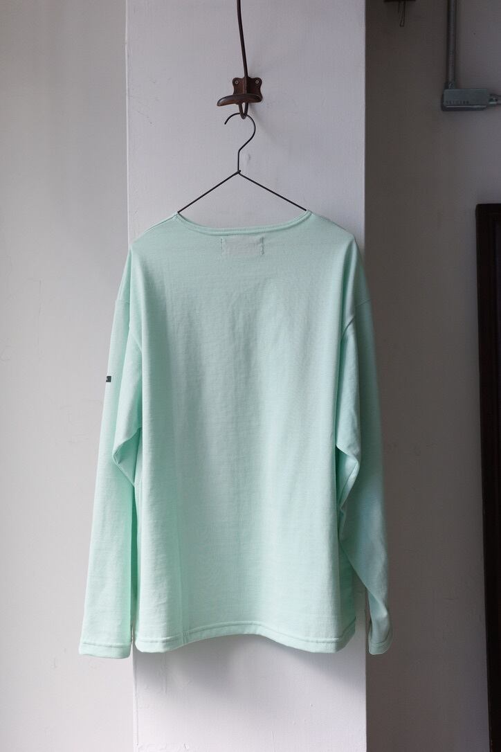 OUTIL(ウティ)定番のバスクシャツ"TRICOT AAST"のネックの開きが狭く改良された新型モデルです。ボディーバランスも、ややすっきりめに変えています。生地は春夏提案の薄めのタイプ、軽くて着心地の良い上質な素材感です。
