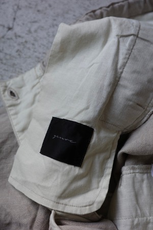 生地はアイリッシュリネン。ヨーロッパの古いリネンのようなある程度の硬さと肉感があって、素朴さとクラシックな雰囲気が魅力です。着続けると柔らかくくったりと馴染んでゆきます。