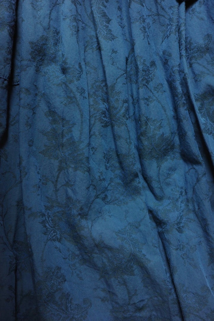 生地はとても古い1800年代のインディゴプリントが施された布地を参考に、ジャガード織機で再現。アンティークかのようなその佇まいは、OUTILの技術だから表現できる雰囲気だと思います。ガーゼのように柔らかくて軽い生地感ですが、透け感はなく1枚で履いていただけますよ。ふわっとたゆたう姿がとても美しいスカートです。