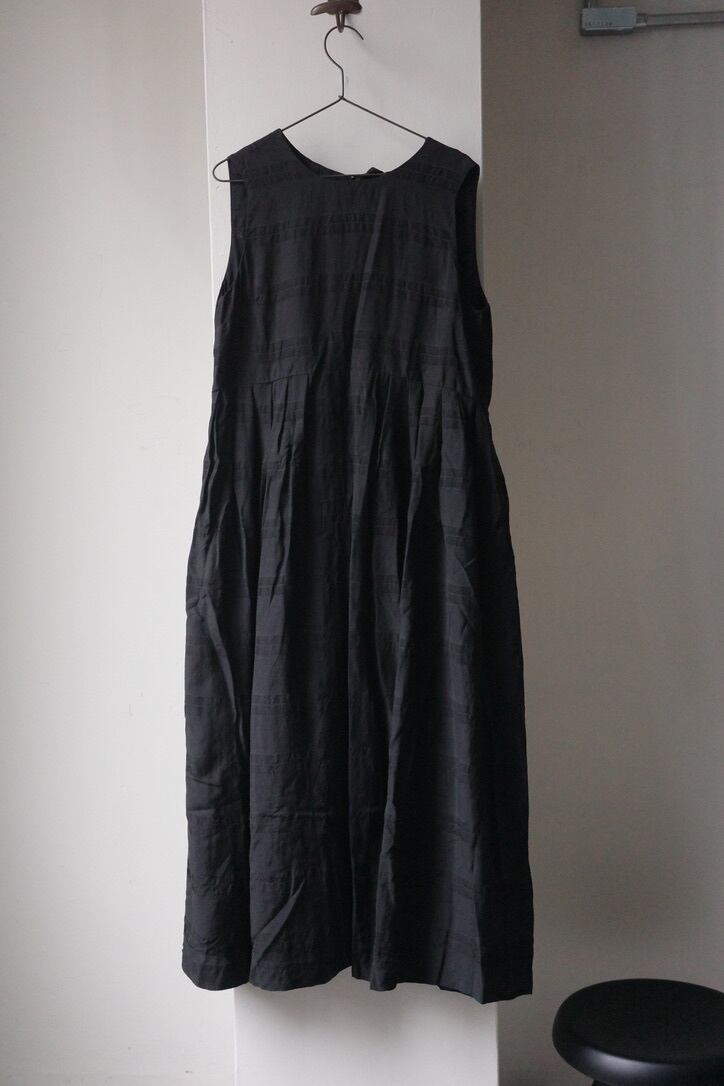 ややハイウエストのギャザーがシルエットを美しく魅せてくれるワンピース。背中と裾に深めのスリットがフェミニンなムードを漂わせます。重ね着次第で通年着用できるのも嬉しい点です。