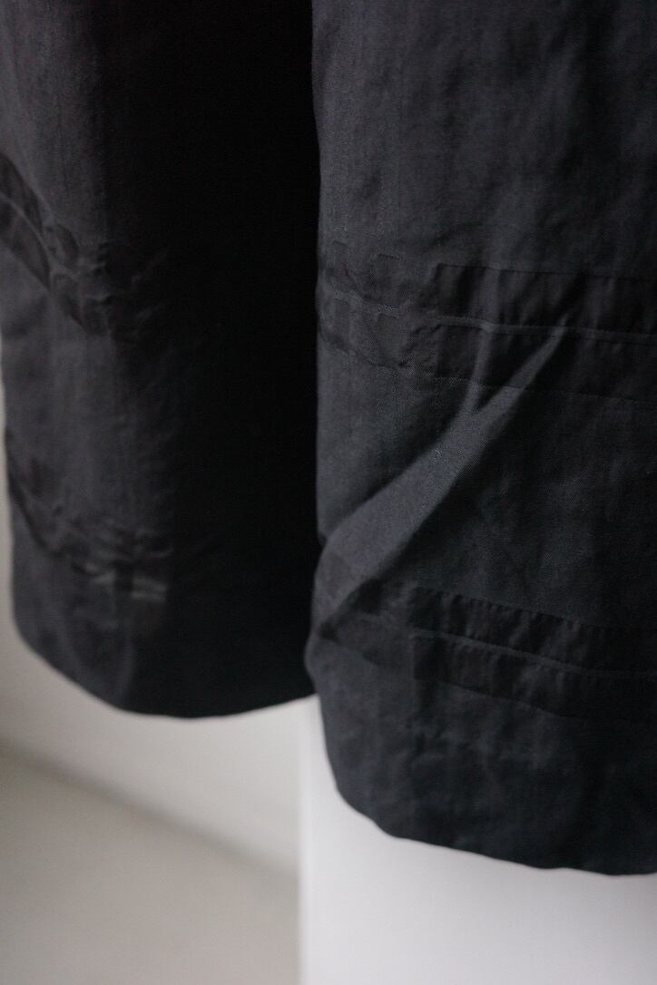 素材は、ヴィスコースとリヨセルのチェック。ツとろみのある生地感です。あえてマットな裏面を使用し、顔料染めを施すことで、映画"ラストエンペラー"の色調を表現した独特な色柄に仕上げています。滑らかでドレープの強い質感、まるで手染めのようなムラ感は雰囲気があり、着こまれたヴィンテージウェアのような表情です。