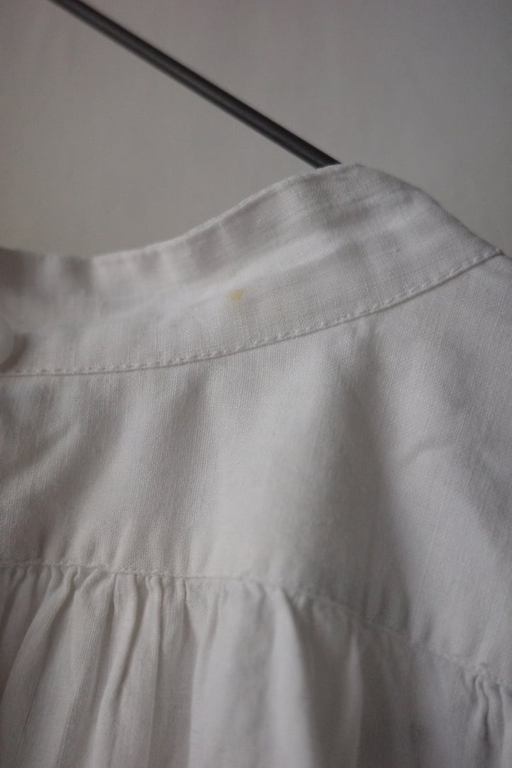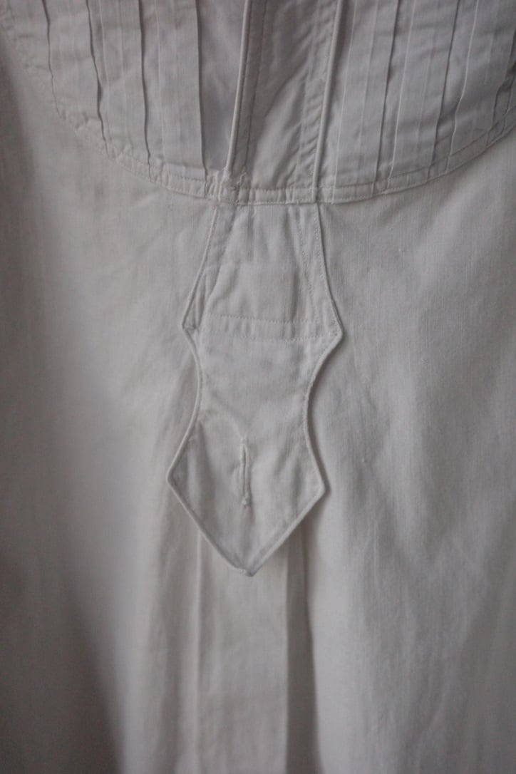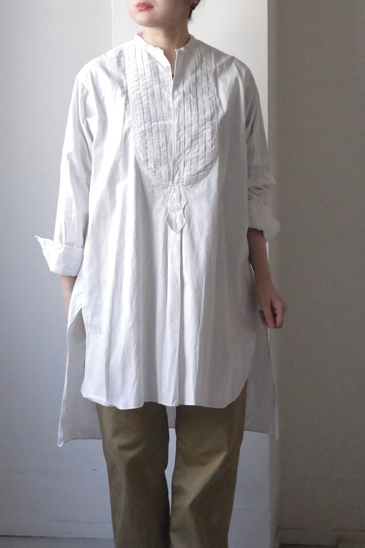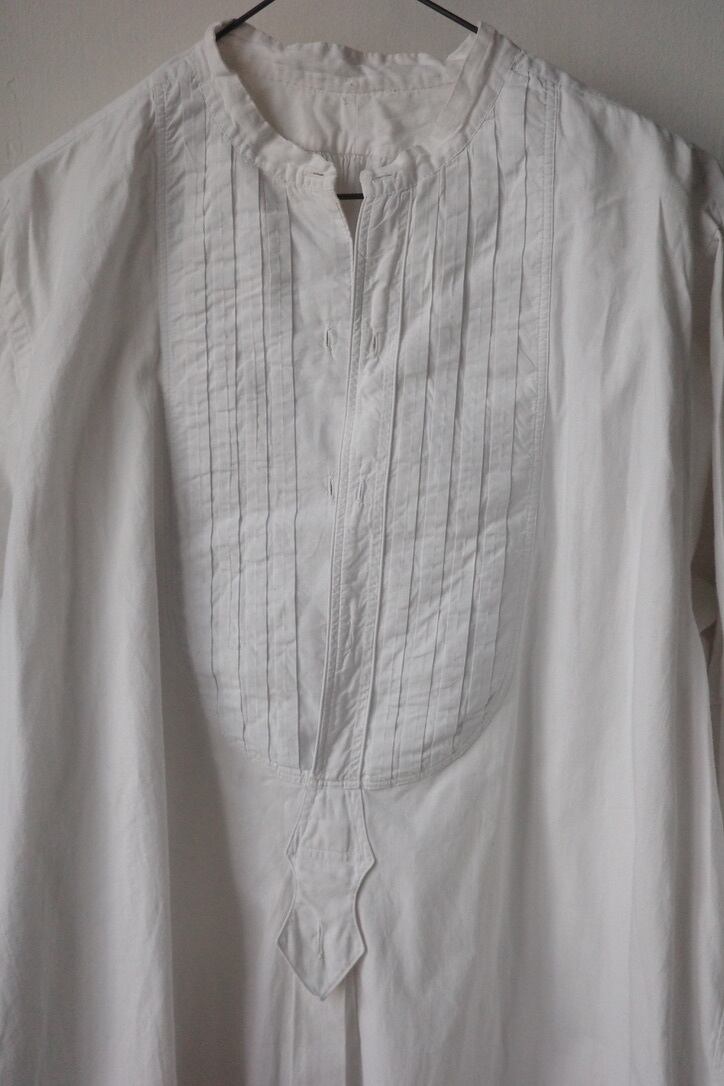推定1920年代~のドレスシャツ。イカ胸部分のタックや袖口など...細部に至るまで美しいドレスシャツならではの縫製の良さです。日常の装いにプラスすると上品さが際立つ一枚。