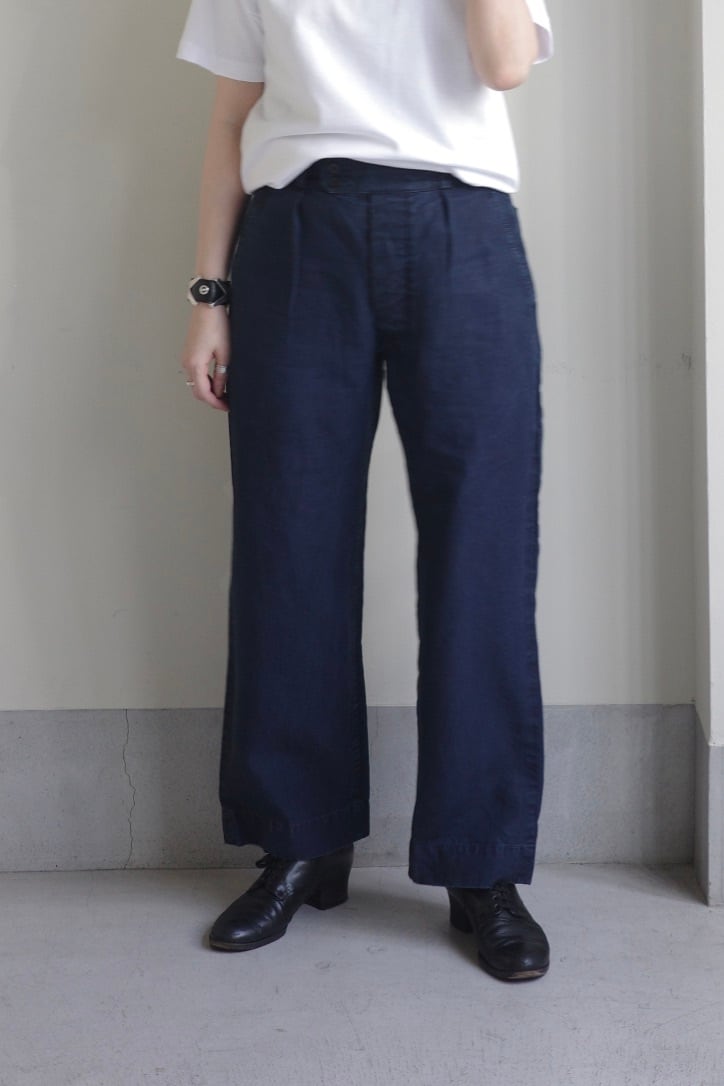 オーストラリア軍作業用パンツをベースにしたデザインです。OUTILの中では比較的すっきりとしたシルエットで、綺麗目にも取り入れやすい一本。サイドアジャストベルトが付いており、ウエストサイズの調整が可能。ベルトループも付いております。