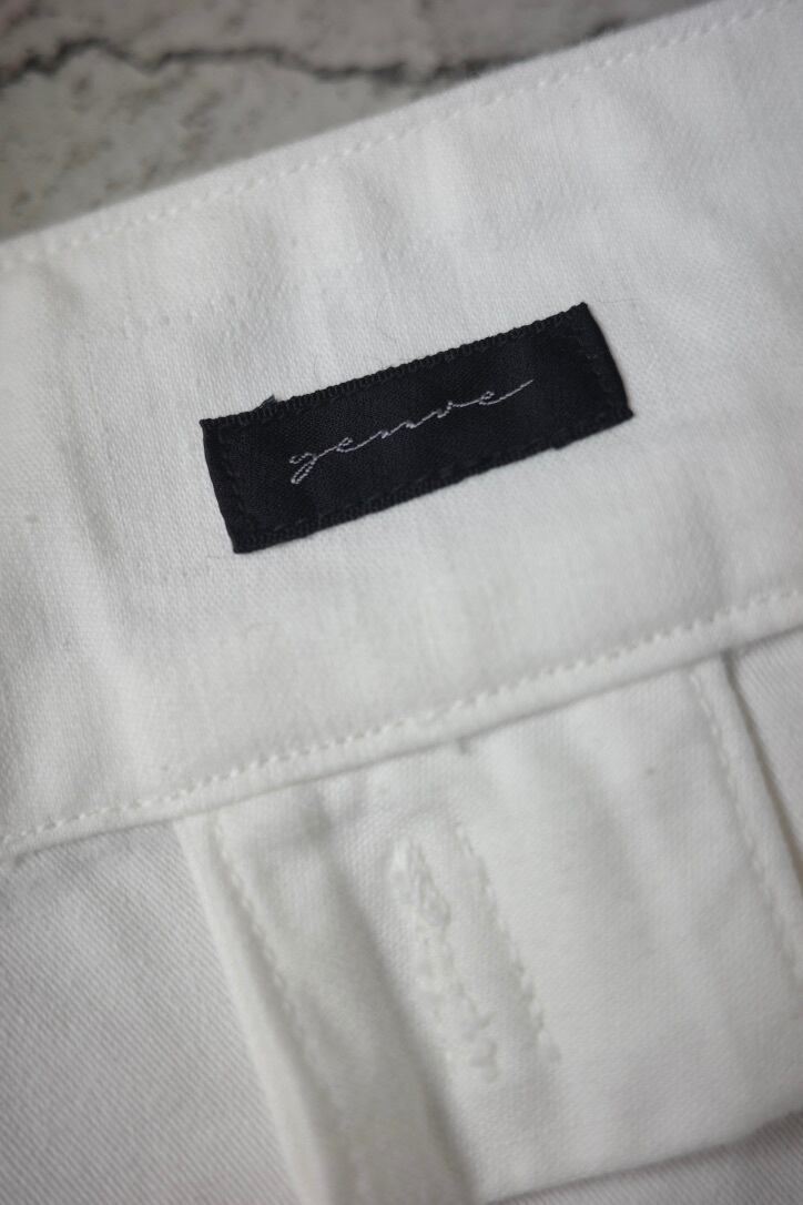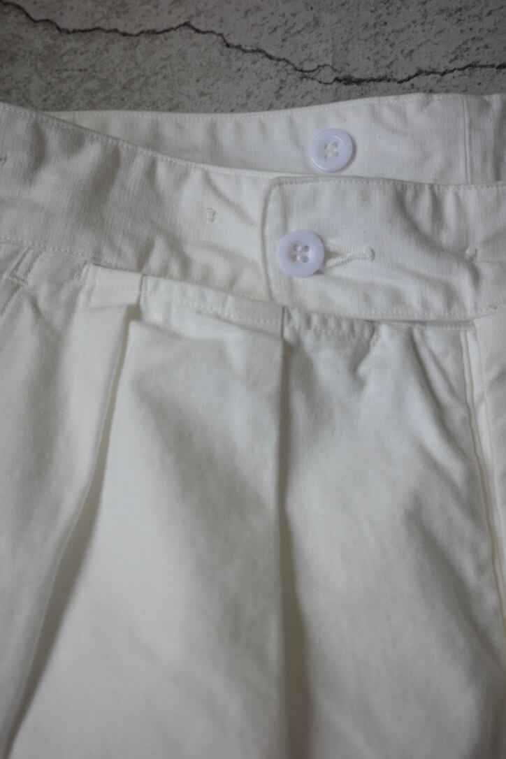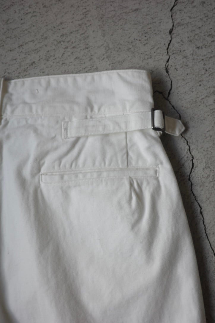 生地はミリタリーらしいがっしりとしたコットン。クリーンで上品な印象もあり、女性らしい雰囲気にもメンズライクにもまとまるので、幅広い印象を与えてくれます。白アイテム特有の透けを気にすることなく穿いていただけますよ。