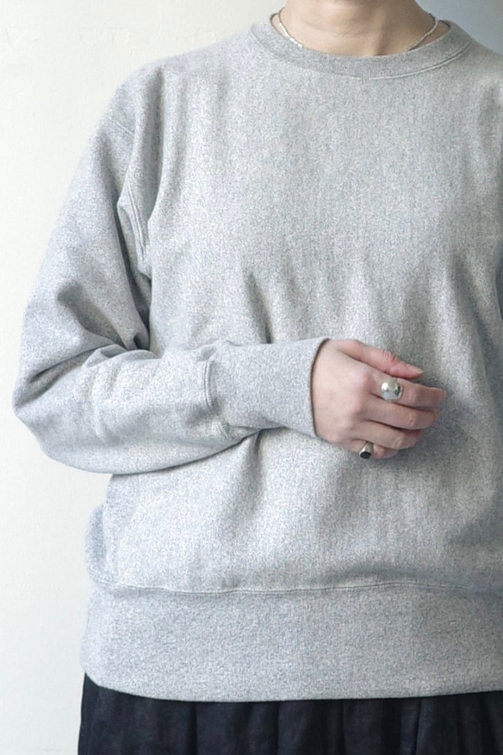 パターンは、1970年代のチャンピオンのスウェットシャツをベースに、生地との相性を考慮し構築。他の年代と比べると、すっきりとしたアームホールと袖のシルエットが特徴であり、1枚での着用はもちろん、ジャケットのインナーとしても理想的なフィット感です。
