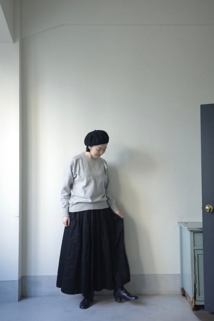 縦長にすっきりとしたシルエット、裾,袖と長めのリブ等が◉この年代のシルエットが個人的に好みです。ヴィンテージで探しても中々無いのですよね...シンプルだからこそ、シルエットや素材はとても大事。軍パンやデニムに合わせたシンプルなスタイルも、スカートやドレスに重ねてレディーにも。オススメのスエットです。